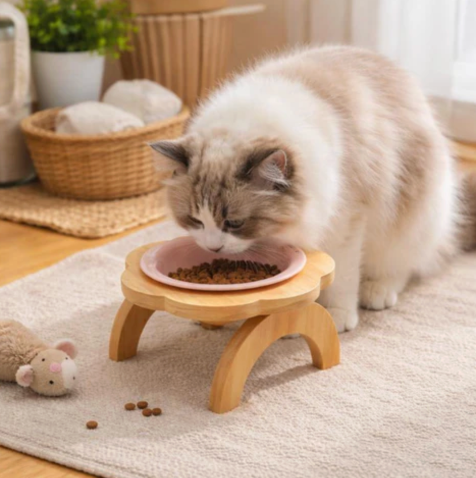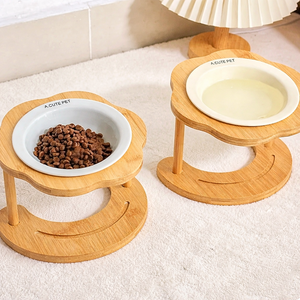 We believe that pet accessories should complement your home, not clutter it. The BloomBase features a high-quality ceramic bowl sculpted into a delightful, soft floral shape. Ceramic is the gold standard for pet health; it is non-porous, lead-free, and prevents the buildup of bacteria that can cause "feline acne." The smooth, wide surface ensures that even pets with sensitive whiskers can dine without irritation. Paired with its minimalist wooden base, it adds a touch of organic, modern style to any kitchen or dining area.